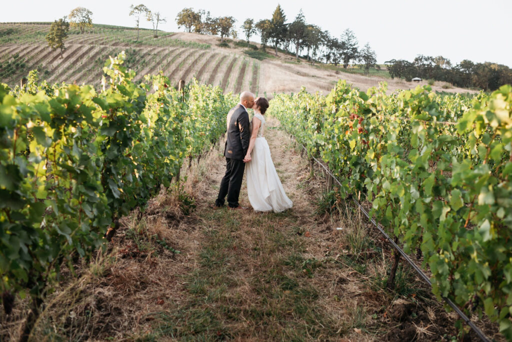 Home / About / Articles / Plan the Perfect Wine Country Wedding in McMinnville April 9th, 2025 Plan the Perfect Wine Country Wedding in McMinnville You can’t beat these swoon-worthy views. Photo courtesy of Maysara Winery. Just one hour southwest of Portland, in the heart of the Willamette Valley, McMinnville is a hidden gem that offers everything you could dream of for your perfect wine country wedding. From rolling vineyards and sweeping landscapes to the most charming main street lined with historic architecture, this enchanting town seamlessly blends rustic elegance with modern sophistication. Whether you envision an intimate gathering among the vines or a grand celebration at a luxurious event center, McMinnville provides the ideal backdrop for an unforgettable wedding experience. One of the greatest draws to McMinnville is its world-class wineries and vineyards. The Willamette Valley is renowned for producing some of the finest Pinot Noir in the world, and many of its celebrated wineries double as stunning wedding venues. Imagine exchanging vows overlooking lush, fragrant hills, toasting award-winning sparkling wines with your guests, and dancing your first dance under a twilight canopy. With a variety of wineries offering event spaces ranging from charming barn settings to sophisticated barrel rooms, couples are sure to find a venue that matches their unique style and vision. The winery event space at Maysara Winery is the perfect spot to host your large group. Photo courtesy of Maysara Winery. Beyond its breathtaking scenery, McMinnville offers a warm and welcoming atmosphere that makes wedding planning a seamless and enjoyable experience. The town boasts an array of wedding vendors, including photographers, floral designers, caterers, and event planners who all come together to bring your dream wedding to life. Whether you’re seeking farm-to-table cuisine, handcrafted wedding décor, or custom wine pairings for your reception, McMinnville’s local businesses are dedicated to making your special day extraordinary. Downtown McMinnville, with its tree-lined streets provides the perfect wine country wedding backdrop. Photo courtesy of the Bindery Event Space. Guests traveling to McMinnville for your wedding will also be treated to an unforgettable experience. The town’s cute and quaint downtown district is home to boutique hotels, cozy inns, unique shops and award-winning restaurants that showcase the region’s best flavors. Visitors can explore tasting rooms, take a horse drawn carriage ride, or visit local attractions such as the Evergreen Aviation & Space Museum. Whether your guests are wine connoisseurs, nature lovers, or history buffs, there’s something for everyone to enjoy. With its breathtaking scenery, exceptional wines, and welcoming hospitality, McMinnville is truly a dream destination for your wine country wedding. Whether you’re a local couple or planning a destination celebration, this vibrant town offers everything you need to create memories that will last a lifetime. Share this Article Share via email Share on Twitter Share on Facebook Next Article